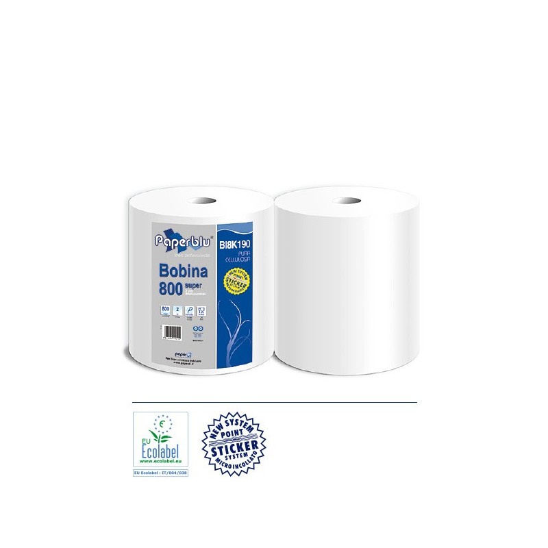 Bobina Pratika 800 – H.25 in pura cellulosa, nuova lavorazione microincollata 2 veli. Prodotto certificato Ecolabel.