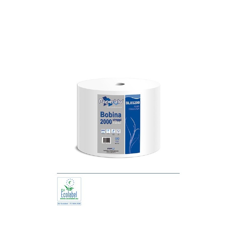 Bobina Super 200 in pura cellulosa, nuova lavorazione microincollata 2 veli. Prodotto certificato Ecolabel. Idoneo al contatto con alimenti.