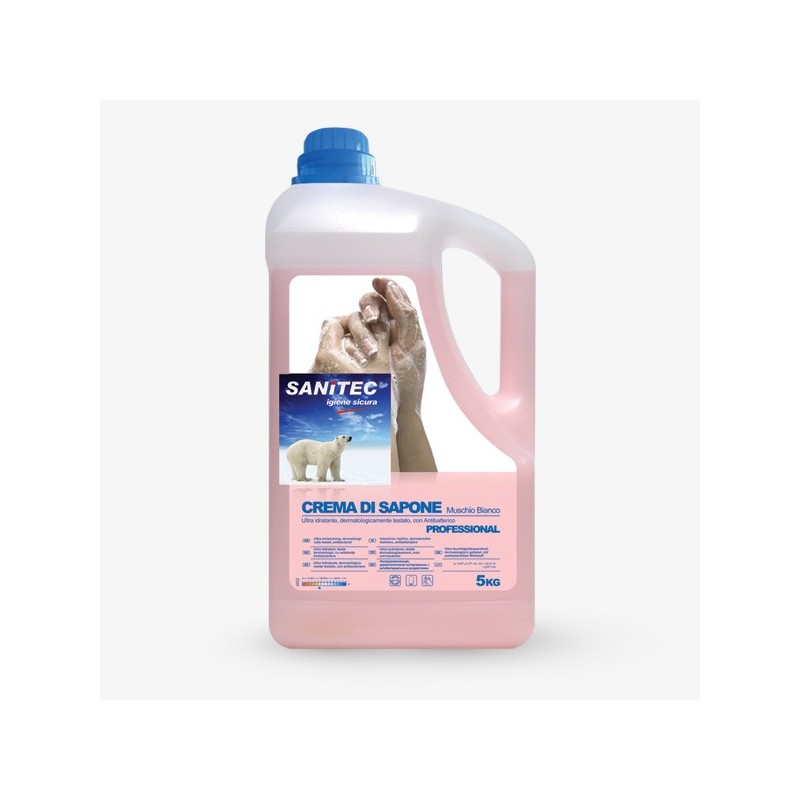 Crema di Sapone Muschio Bianco. Dermatologicamente testato. Crema di sapone madreperlata rosa ultra idratante a pH 5.5 con antibatterico. Deterge delicatamente offrendo il massimo rispetto della pelle lasciandola morbida e vellutata grazie alle sostanze emolienti contenute e consigliate dalla moderna dermatologia. Indicato per pelli delicate e sensibili.
